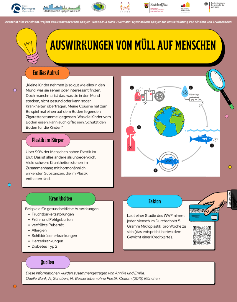 Es war uns wichtig, Jugendliche in das Projekt einzubeziehen, um sie bewusst anzuregen sich mit dem Thema „Müll und Umwelt“ auseinanderzusetzen.  Dadurch erscheinen die Schautafeln auch in einem jugendlichen Sprachbild und sprechen so genau die Zielgruppen an.