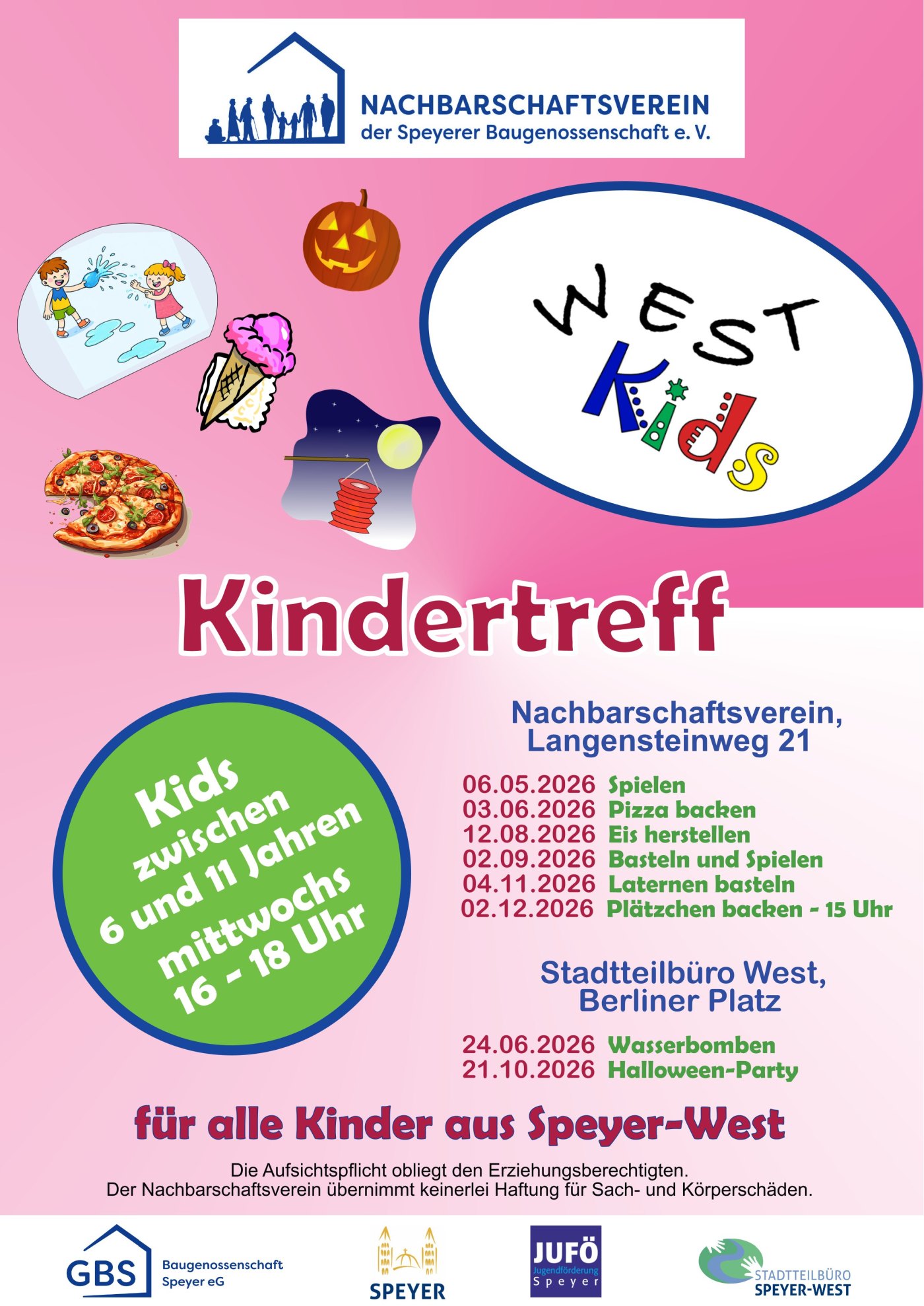 Der Nachbarschaftsverein der GBS bietet im Sommer ein neues Programm für Kinder zwischen 6 und 11 Jahren an. ALLE Kinder aus Speyer-West sind herzlich eingeladen.