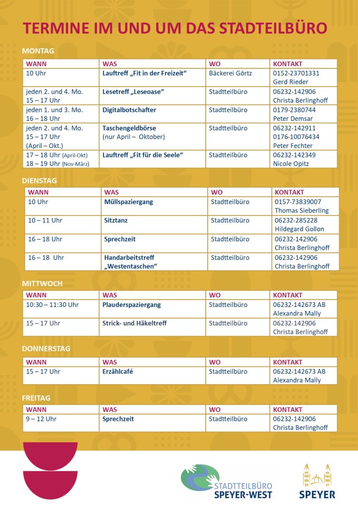 Hier finden Sie Informationen zu den Veranstaltungen, die in Speyer-West in Zusammenarbeit mit dem Stadtteilbüro und/oder Stadtteilverein durchgeführt werden.